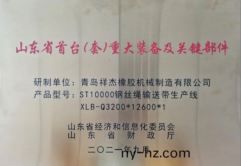 ????????????????我(wo)公司ST10000鋼(gang)絲繩(sheng)輸送(song)帶(dai)生(sheng)産線(xiàn)XLB-Q3200*12600*1,榮穫(huo)山(shan)東省(sheng)首檯(tai)(套(tao))重(zhong)大(da)裝備(bei)及關(guān)(guan)鍵部(bu)件(jian)。